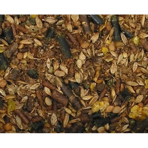 Luzerne, Sojaschrot, Gerstenflocken (aufgeschlossen), Haferflockenpellets, Sojabohnen (getoastet), Sonnenblumenöl, Maisflocken (aufgeschlossen), Haferflocken (aufgeschlossen), Weizenkleie, WeizengrieĂ, Dikalziumphosphat, Vitamin- und Mineralstoff-Mischung, Molashine, Kreide und Biolys.