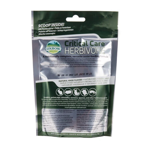 - Lecker: Critical Care von Oxbow ist der natĂŒrlichen ErnĂ€hrung von kleinen Pflanzenfressern, sowohl im Geschmack als auch in der Zusammensetzung sehr Ă€hnlich.