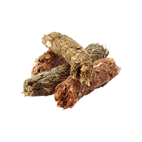 Pflanzliche Nebenprodukte (Luzerne 35 %), pflanzliche EiweiĂźextrakte, Samen (Leinsamen 2 %), Mineralstoffe, Fructo-Oligosaccharide (0,3 %), Ringelblume, Yucca